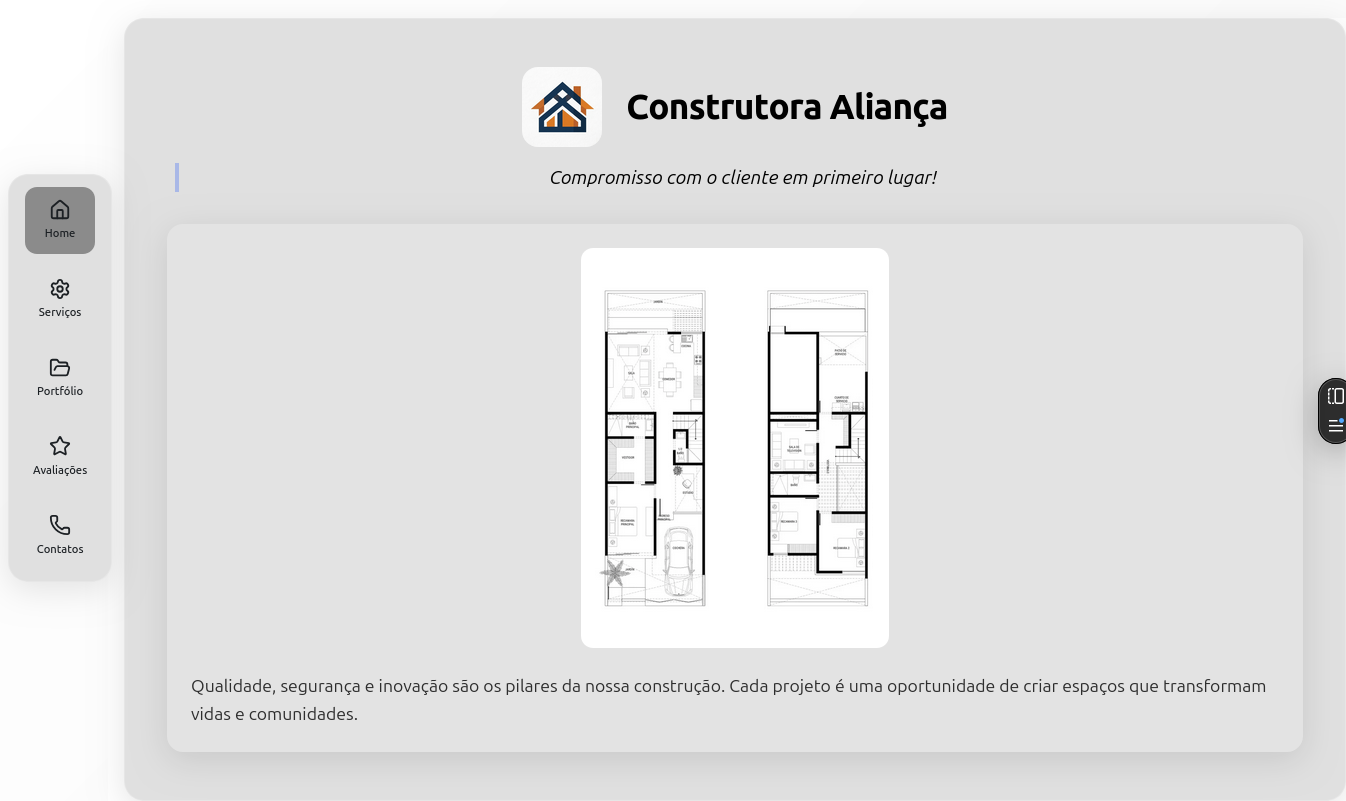 Plataforma digital focada na exibição de portfólio e serviços de construção civil. O projeto une design moderno e clareza visual para apresentar soluções arquitetônicas e de engenharia com profissionalismo e inovação.